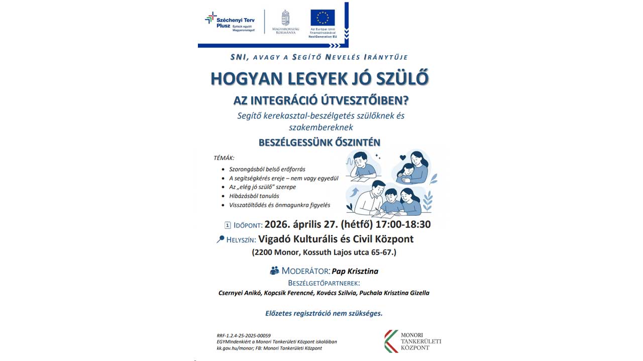 Tisztelt Szülők! Szeretettel hívjuk és várjuk Önöket az „Hogyan legyek jó szülő az integráció ...